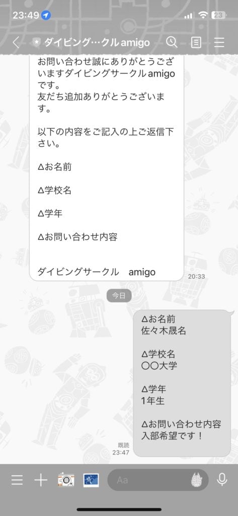 そこで友達と一緒に入るという理由でダイビングサークルに入る選択をしました。