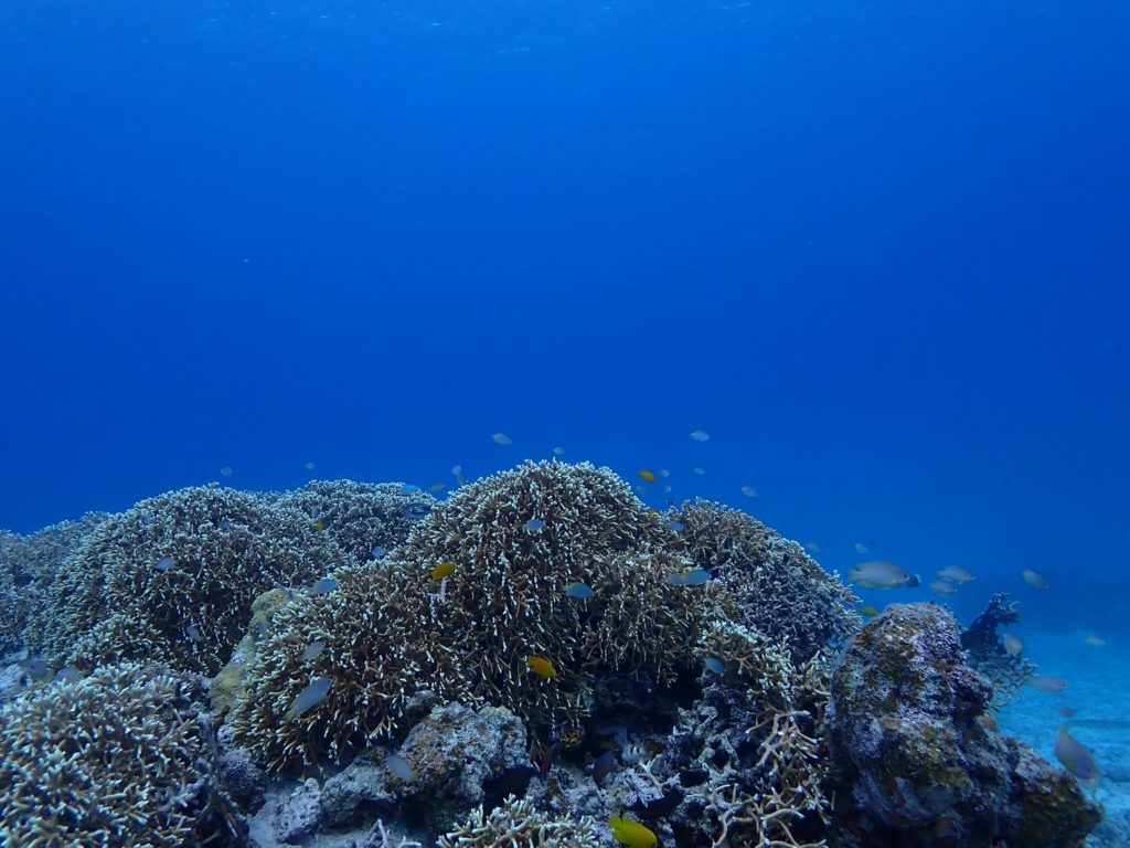 沖縄の真っ白な砂浜と珊瑚礁が広がってて