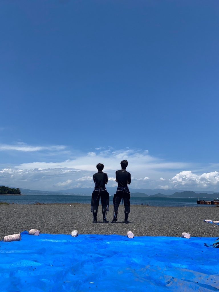 こんなにも晴れていましたが水中に入ると前日の台風の影響で濁り気味、、、