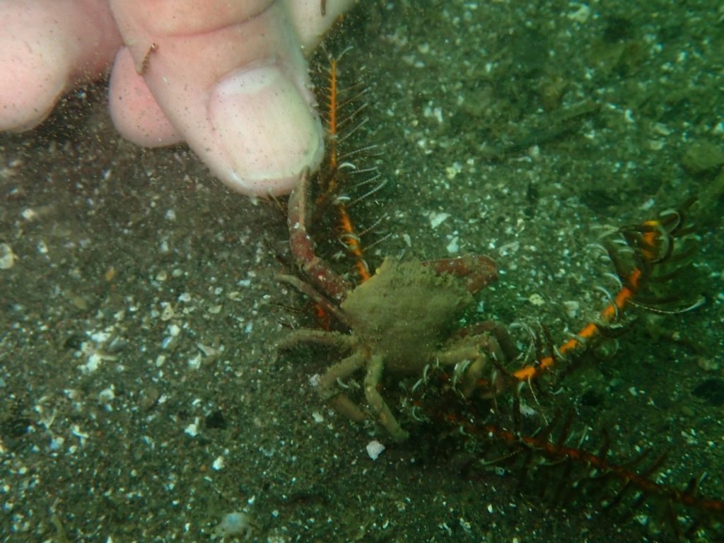 カニさんと握手するなんて、これは楽しんでますね😏